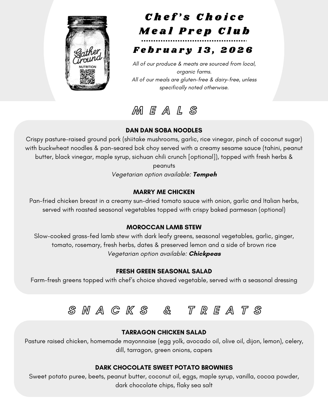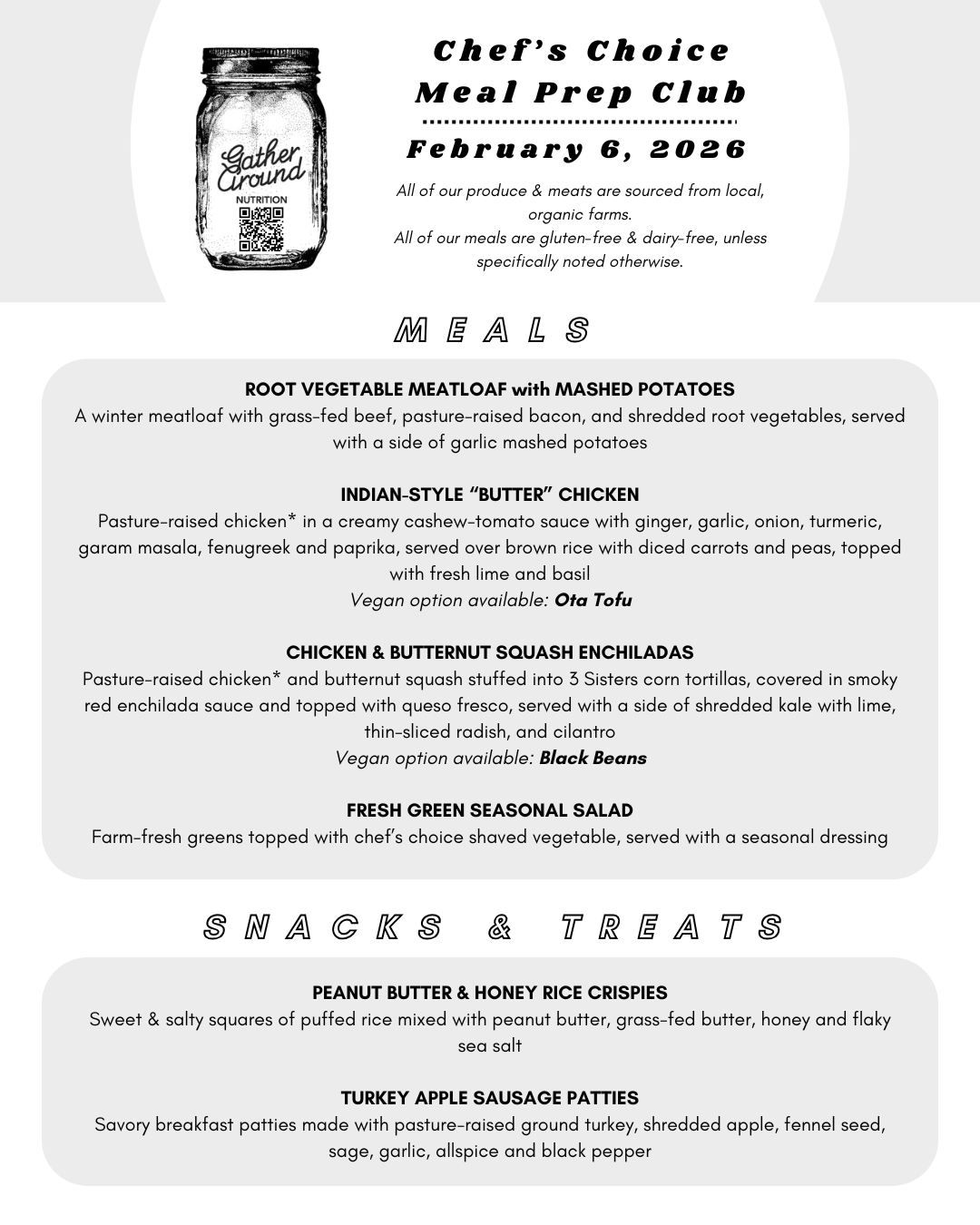 Go to Meal Prep Club to see our current menu!